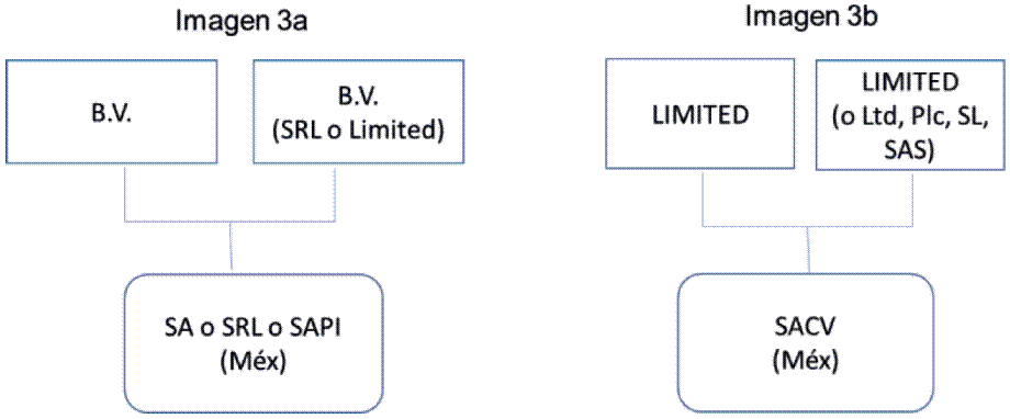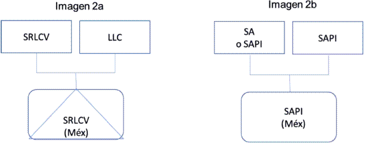 En este esquema casi siempre las partes sociales de la sociedad de responsabilidad limitada firmante son propiedad de una empresa de la misma naturaleza acompañada de una Limited Liability Company extranjera como se muestra en la Imagen 2a.