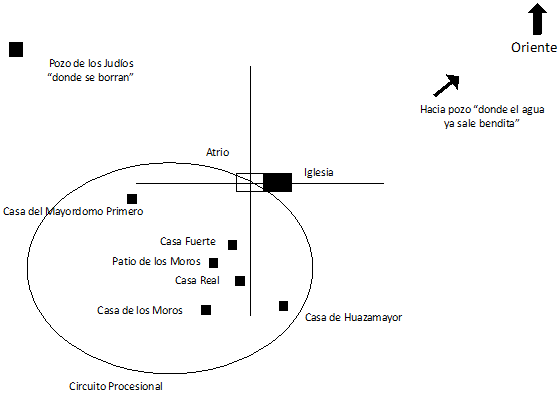 Esquema 1 Lugares relevantes de la comunidad durante la Judea y circuito procesional Fuente: Elaboración de la autora.