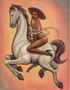 En el caso de Cháirez y su polémico cuadro de Zapata, tenemos varios elementos específicos ligados con la discusión sostenida, ya que primero hace una alegoría a Emiliano Zapata, con un hombre joven, prieto, visiblemente homosexual, con tacones y un sombrero rosa; el caballo tiene un falo erecto, que da cuenta de las formas en las cuales se ha mostrado públicamente el arte gay.