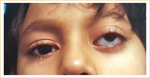 Figura 1 Imagen clínica mostrando el ojo izquierdo con proptosis y desplazamiento importante de globo ocular hacia arriba.