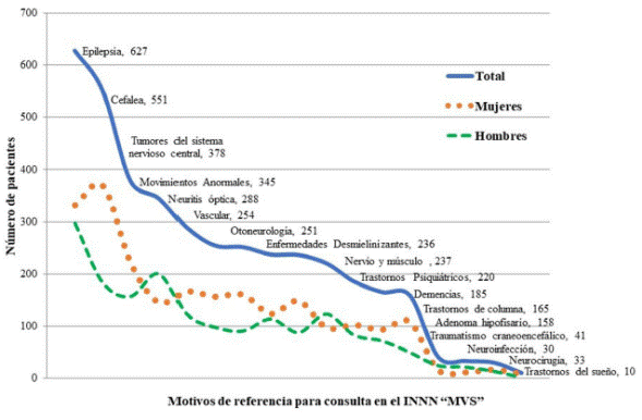 Durante el año estudiado, la epilepsia fue el principal motivo de referencia al INNN -después de la valoración neurológica no específica-, además de ser el principal motivo de atención de consulta externa en dicha institución. La mayoría de los pacientes con epilepsia fueron referidos de unidades de primero y tercer nivel de atención, así como de médicos del sector privado.