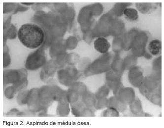 La función renal estaba conservada, y no se encontraron lesiones líticas en la serie ósea, la citología hemática y el calcio fósforo, magnesio potasio y sodio fueron normales.