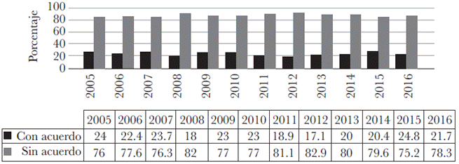 Si se analizan los estudios en este tema, no existe mucha literatura al respecto. Con todo, un estudio de Candia y Suazo (2011) que observa la tasa de éxito del sistema de mediación prejudicial por daños en salud en el periodo entre 2005 y 2009, ésta fue de 15.92%. Las mediaciones efectuadas por el Consejo de Defensa del Estado tienen una tasa de éxito de 17.94% mientras que los procedimientos realizados por mediadores privados tuvieron una tasa de éxito de 10.63%. Si se analizan las cifras actuales del Consejo de Defensa del Estado el 21.1% son causas terminadas con acuerdo y 78.9% terminadas sin él durante 2005 y 2016, y se puede revisar en el siguiente cuadro extraído de los informes del Consejo de Defensa del Estado.