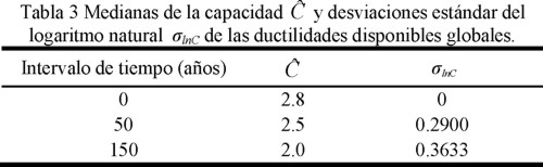 Se verificó que las ductilidades globales presentan una distribución de probabilidades de tipo lognormal. En tabla 3 se presentan los valores de la mediana de la capacidad