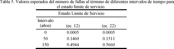 En las tablas 5 y 6 se muestra el número de fallas esperado al término de un intervalo de tiempo (