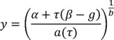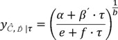 La forma de la ecuación 16 se propuso con base en los resultados obtenidos del ejemplo que se presenta en la siguiente sección. Los parámetros e + f · τ representan la forma en la que se van incrementando los valores de la demanda estructural a medida que crece el intervalo de tiempo (a medida que se va acumulando más daño en la estructura), el parámetro g · τ describe el daño "inicial" que presenta la estructura (al final de cierto intervalo de tiempo e inicio del siguiente). La forma de la ecuación 16 tiene la ventaja de que conduce a una solución cerrada de la integral expresada por la ecuación 5.