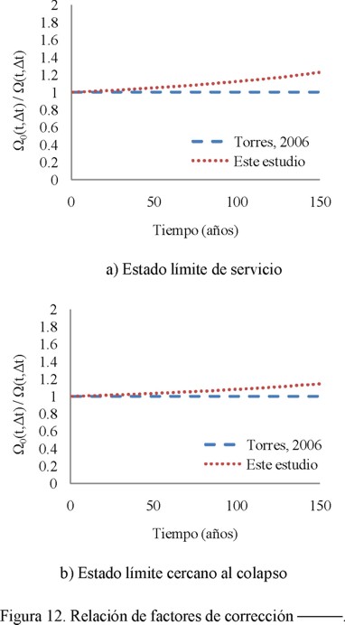 , cobra mayor importancia a medida que el intervalo de tiempo crece. Esto ocurre tanto para el estado límite de servicio como para el estado límite cercano al colapso.