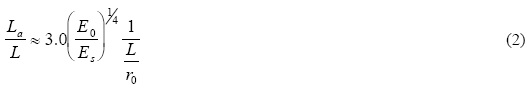 Si se sustituye la relación de esbeltez L/r0 en la ecuación 1 para expresar la longitud activa en términos del porcentaje de la pila que se encuentra sujeta a esfuerzos La/L se tiene que: