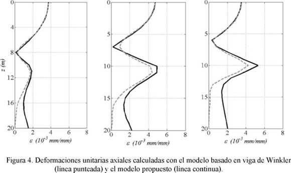 Debido a la poca influencia que tiene en general en el comportamiento lateral de las pilas sujetas a cargas en la cabeza, el efecto de la estratificación en la distribución de los elementos mecánicos no es considerado en los análisis convencionales. Es claro que para el caso del paso de ondas sísmicas esta condición puede producir grandes concentraciones de esfuerzo en la interfaz.