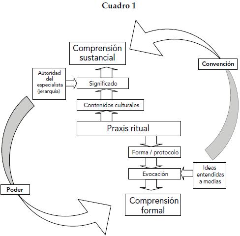 En la consecución de los procedimientos y la disposición del espacio ritual, en su concatenación lógica, se determinan los posibles sentidos, siempre y cuando los pensemos en sus relaciones contextuales y no a partir de significados emanados de universos culturales cerrados.