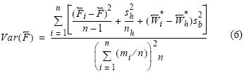 donde sh es la varianza de la relación lineal fecundidadpeso (ecuación 1), nh el número de hembras hidratadas usado para ajustar la regresión,