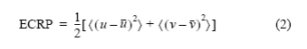 donde ( ( indica el promedio en el tiempo, y u representa la componente zonal y v la componente meridional de la corriente en superficie. Estas expresiones fueron empleadas para ilustrar la alta energía que generaron las corrientes al entrar al mar Caribe (Jouanno et al. 2008), así como para estudiar y caracterizar la variabilidad de mesoescala en esta zona (Richardson 2005) y otras regiones (Hormazabal et al. 2004).