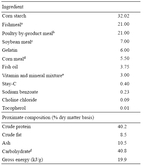 Table 1: Ingredients (g/100 g diet) and proximate composition (g/100 g) of the diet.