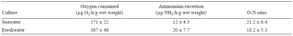 Growth, ammonium excretion, and oxygen consumption of hybrid red tilapia (Oreochromis mossambicus × Oreochromis aureus) grown in seawater and freshwater