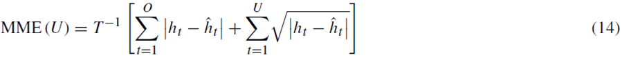 The predictive error measures are classified in symmetric and asymmetric. Among the more common symmetric measures are the mean squared error (MSE) and the mean absolute error, which are defined in the following manner: