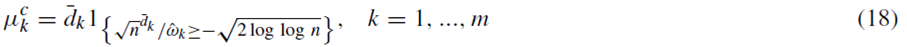 where 1{⋅} is an indicator function. Furthermore, an immediate result of the assumption of seasonality is that the selection of the threshold √2 log log n guarantees the consistency of the estimator μk c for a sufficiently large n, even for the alternative models with μ k = 0.