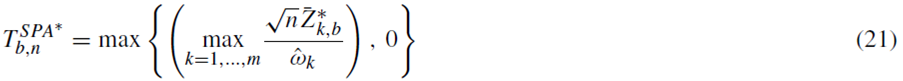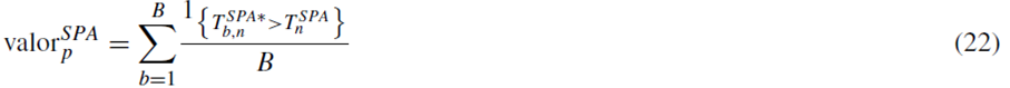 The probability value of the SPA test is calculated in two stages. First of all, the values of the statistic T b,n SPA * are obtained for each of the bootstrap samples b = 1,...,B, which is defined as: