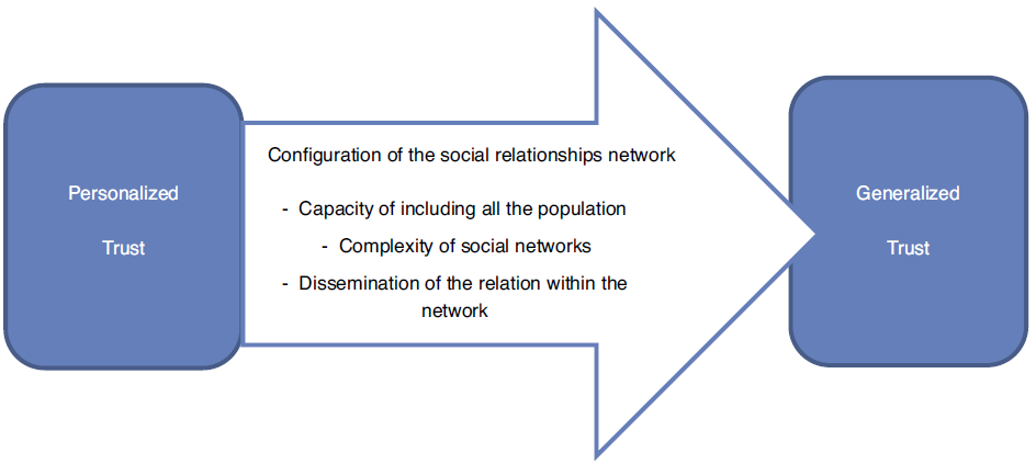 The following diagram of Fundación BBVA's (2007) report “Social Capital in Autonomous Communities and Provinces” graphically explains the importance of social networks in the generalization of trust: