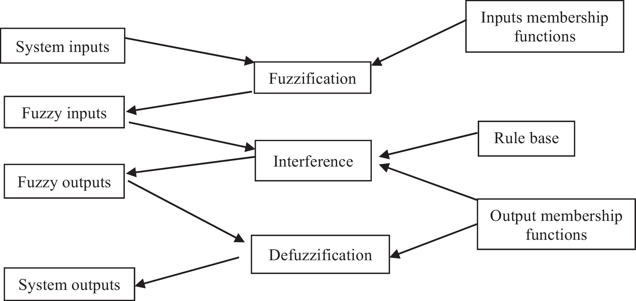 The interference block represents the rules that will define the system and the manner in which the input and output fuzzy sets relate.