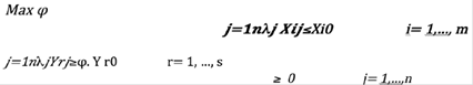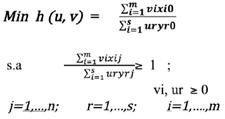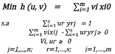 Where s ī represents the input excess i and S + r, the lack of the r output. Therefore, the dual model (of output maximization) is the following expression: