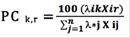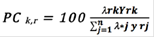 So that the contribution percentage of the efficient entity k to the target values of input i of an inefficient entity (PC k,i ) will be:
