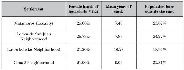 Sociodemographic characteristics of the inhabitants of Matamoros and the neighborhoods studied