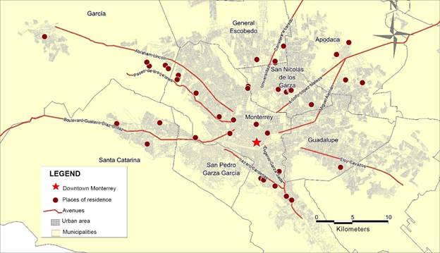 The representative office of the Instituto Nacional de Migración (INM) in Nuevo Leon, through an official letter signed by its head in February 2020, responded to this article’s authors that it had received 3 293 applications for residency from foreigners of Venezuelan nationality. Later, in February 2022, the same agency announced that 5 792 Venezuelans resided in the aforementioned state, 98% of whom are located in the MMA, that is, 5 650. Although these numbers may not reflect the total number of Venezuelans in Nuevo León, they do indicate that 11% of Venezuelans legally residing in Mexico reside in this state.