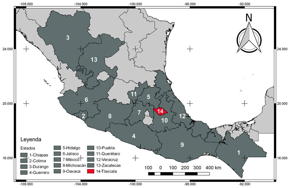En los trabajos de Castillejos y Ramírez (1992), Fernández y López-Domínguez (2005) y Villers et al. (2006) realizados en Tlaxcala, no se encontró registro del género ni de la especie.