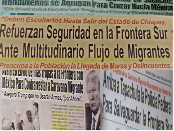 Image 1. Collage of newspaper headlines alluding to the arrival of the migrant caravan.