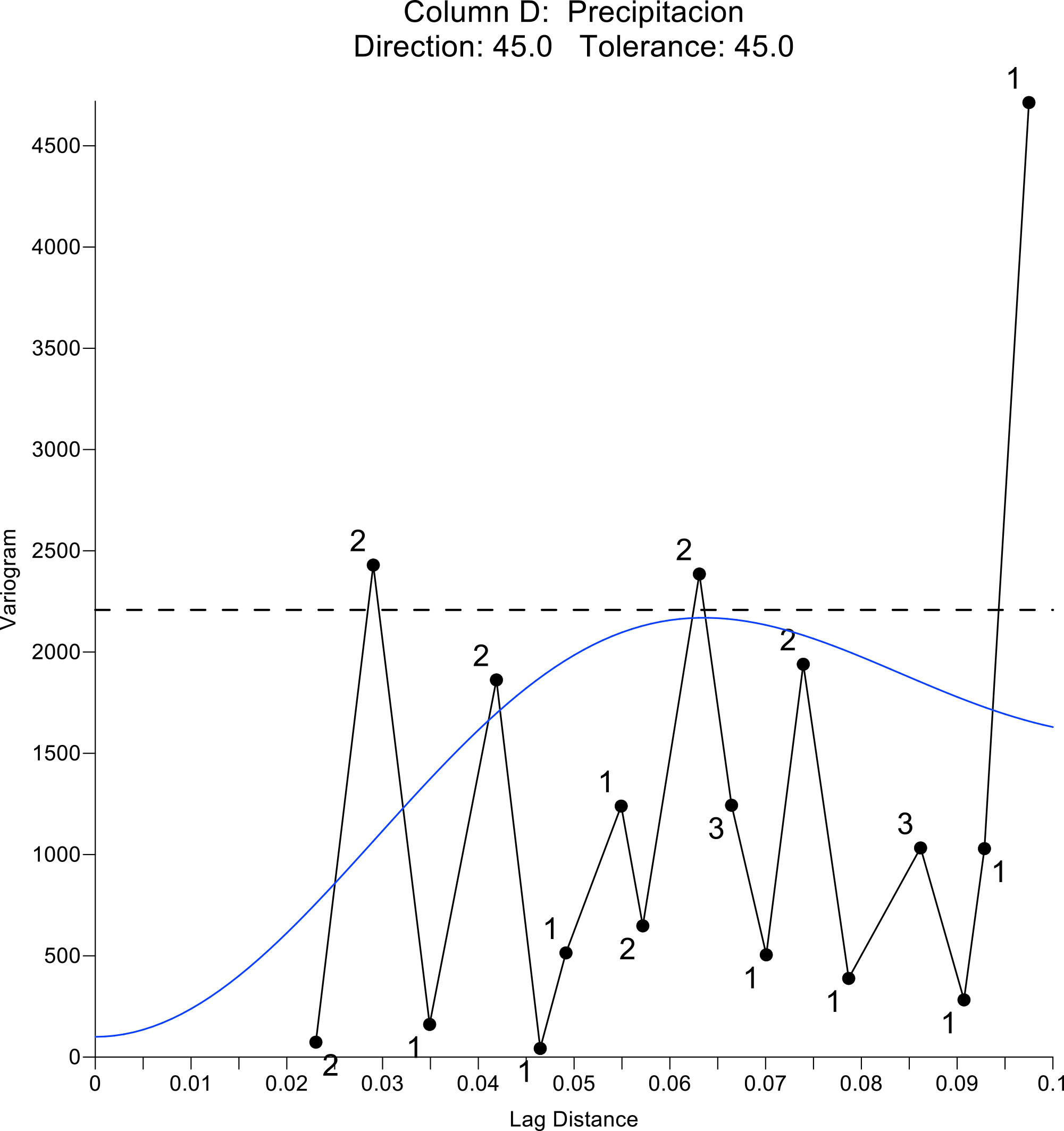 Figura 4 Variograma del mes de junio del año 2014, con dirección de 45° y tolerancia de 45°.