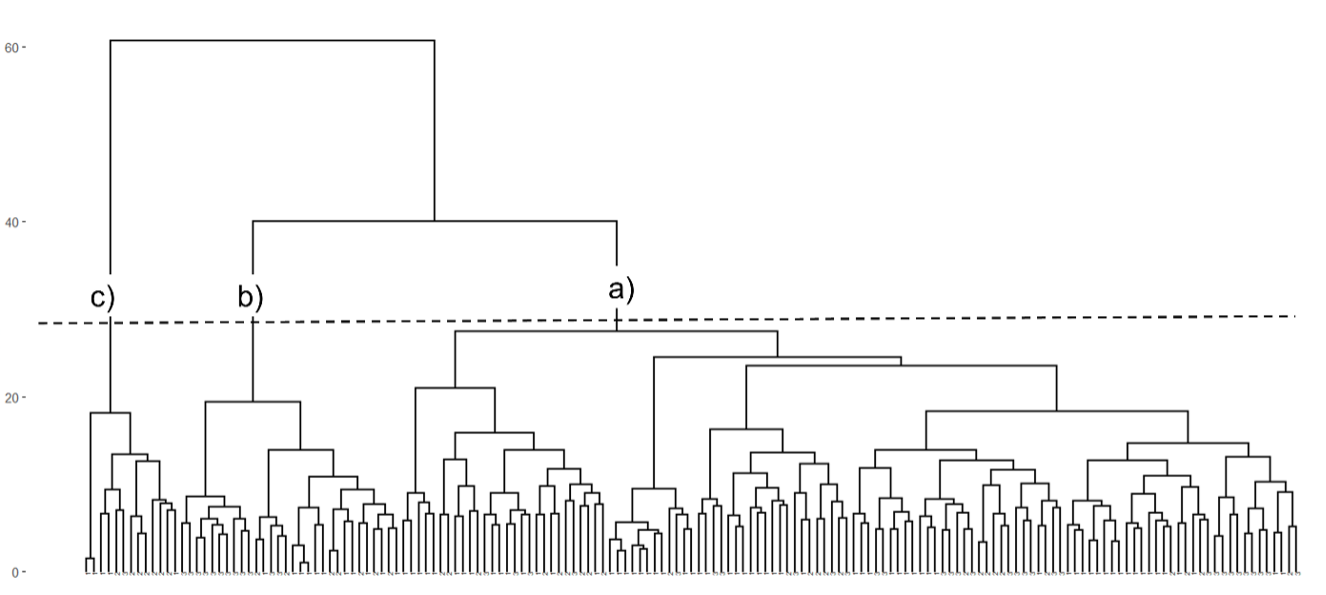 Siguiendo las pautas de Reed et al. (2009), se caracterizó a los beneficiarios de los SE con base en las variables del perfil socioeconómico, aplicando estadística descriptiva. Después se realizó un análisis de conglomerados jerárquico (ACJ) en función de las variables nivel educativo, municipio y localidad de procedencia, sexo, edad, sector económico y tipo de SE identificados. El AJC se realizó con el paquete cluster del software R studio 4.1.0. (R Core Team, 2020), y se empleó la distancia euclídea para establecer la semejanza entre los elementos de cada conglomerado y el método de Ward como algoritmo de aglomeración, dada su capacidad para minimizar la varianza total dentro del grupo.