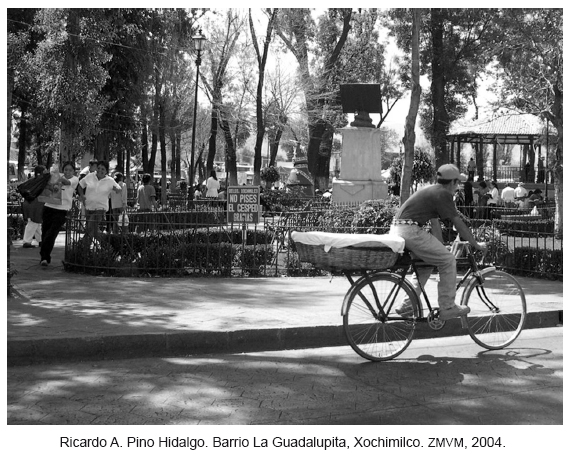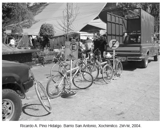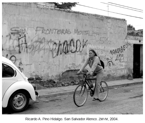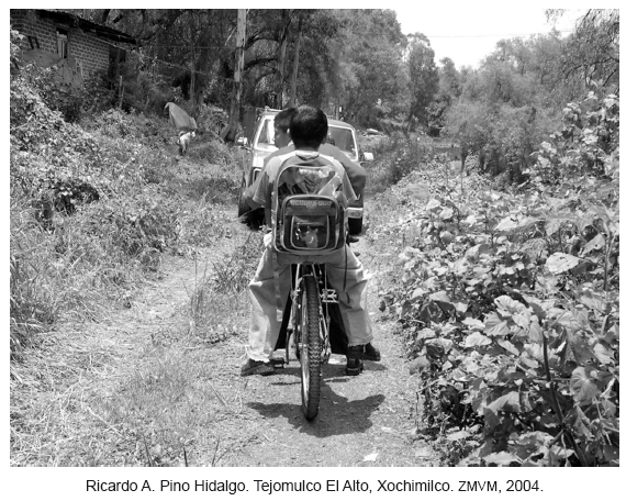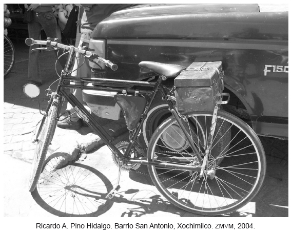 La degradación ambiental y la situación de vulnerabilidad en que se encuentra nuestra sociedad frente al cambio climático, nos exigen, entre otras cosas, transformar nuestra mirada: hacer visible la cotidianidad, las prácticas y experiencias cercanas, las formas en que "la gente" ha enfrentado otras degradaciones y vulnerabilidades más arraigadas aunque íntimamente relacionadas con las de hoy. Un registro fotográfico en esos "territorios periféricos" de la Zona Metropolitana del Valle de México (ZMVM) que aún reconocemos como pueblos y barrios, da cuenta de la apropiación y uso que hacen de la bicicleta sus habitantes (incluidas algunas colonias populares), donde la bici y el triciclo se han impuesto como los medios idóneos para hacer frente a sus necesidades de transportación desde hace ya muchos años. Si bien, a nivel mundial e intergubernamental se han propuesto las nociones de "adaptación" y "mitigación" como un conjunto de medidas, iniciativas y políticas encaminadas a reducir los efectos del cambio climático, esta serie fotográfica pretende dar testimonio de una experiencia y un saber popular que, tal vez por su cercanía, no se han reconocido y a los que podemos mirar, si se quiere, como formas culturales de resistir y de enfrentar también el cambio climático.