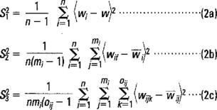 donde f1, f2 y f3, son las fracciones de muestreo para la primera, segunda y tercera etapas, respectivamente y las varianzas (s2i's) del peso, observadas en la primera, segunda y tercera etapas, respectivamente, se definen como sigue (Solana-Sansores y Arreguín-Sánchez, 1991):