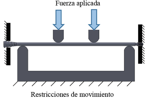 Con base en lo anterior, se aplicó una carga perpendicular de 100 N para simular el caso más extremo del paciente, el cual refiere a una bipedestación (Figura 2).