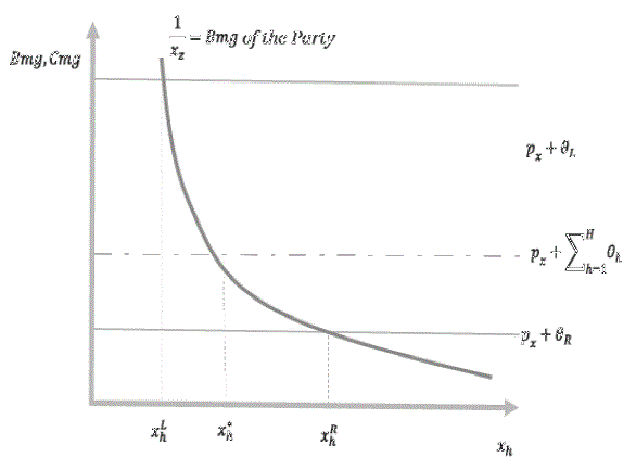 Where Е[θ h ]is the average personal cost of the private good’s pollution, which is given by: