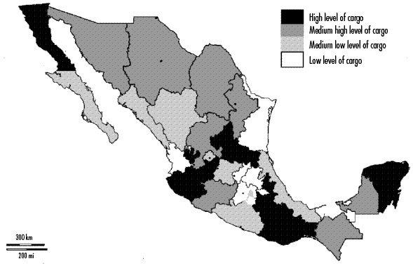 Not all states in Mexico have incoming or outgoing international cargo. The states with statistics reporting this type of cargo during the period analyzed were Aguascalientes, Baja California Sur, Mexico City, Chihuahua, Estado de México, Guerrero, Guanajuato, Jalisco, Nuevo León, Oaxaca, Quintana Roo, San Luis Potosí, Sinaloa, Sonora, Tabasco, Tamaulipas, Veracruz, Yucatán, and Zacatecas.
