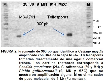 Palabras clave adicionales: Ustilago maydis, PCR, levaduras antagónicas, Candida railenensis, Candida quercitrusa, Pichia guilliermondii.