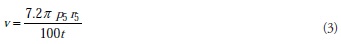 La velocidad de trabajo se calculó a partir de las revoluciones y radio de P quinta rueda con la ecuación 3: