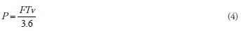 La potencia de tracción (P, kW) es el producto de la fuerza de tracción (FT, kN) y la velocidad de sistema tractor-implemento en la dirección de avance, y se calculó con la ecuación 4 (Mayans et al., 2010;Gonzaga do Vale et al., 2011):