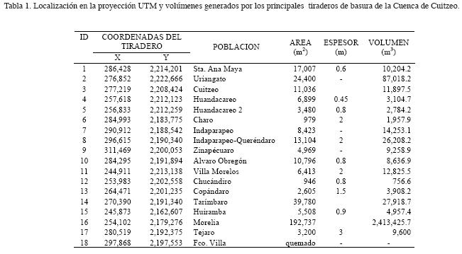 Key words: Cuitzeo Basin, dumps, urban residues, fluviolacustrine environments, fractured lavas.