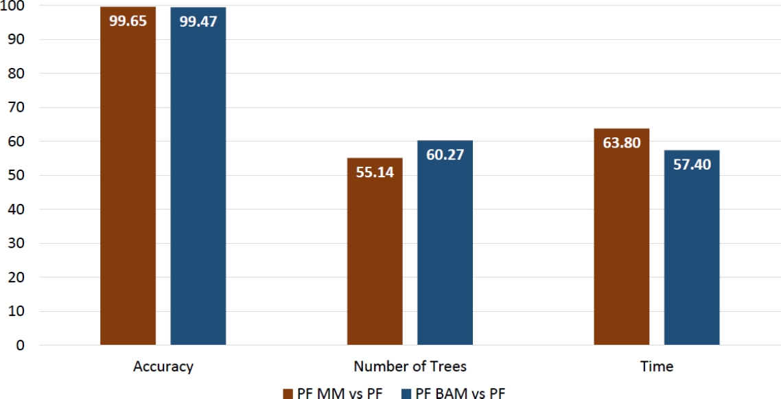 – Proactive Forest in its original scheme has the best accuracy values with a significant difference between PF and both PF MM and PF BAN.
