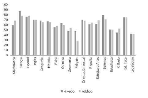 Sin embargo, las preferencias por asignaturas parecen no tener relación con la clase social, dado que no se encontró diferencia significativa entre las instituciones privadas, que corresponden a un nivel socioeconómico más alto, y las públicas. Estos hallazgos son importantes al considerar la educación como un instrumento para el desarrollo socioeconómico, por cuanto la diferencia en el grado de dificultad percibida de las asignaturas, entre los estudiantes de instituciones públicas y privadas, debe plantear un debate en torno a la brecha en la calidad de la educación pública con respecto de la privada y su incidencia en el desarrollo de las habilidades del pensamiento (razonamiento, pensamiento creativo y solución de problemas) que pueden contribuir a mejorar el acceso de las clases menos favorecidas a mejores niveles de vida en lo económico y social (Lozano, 2005; Winters, 2011; Zhong, 2011).
