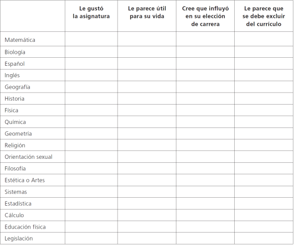 percepción sobre asignaturas que se deben excluir de la formación,