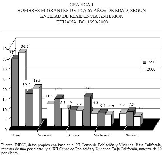 Los datos del censo de 2000 para la ciudad de Tijuana corroboran esta tendencia registrada en la emigración de veracruzanos, lo cual indica la importancia que adquieren las ciudades del extremo occidental de la frontera norte, y en tal caso sería coincidente con los estudios realizados que indican una alta movilidad hacia Ciudad Juárez (Zamudio, 2001).