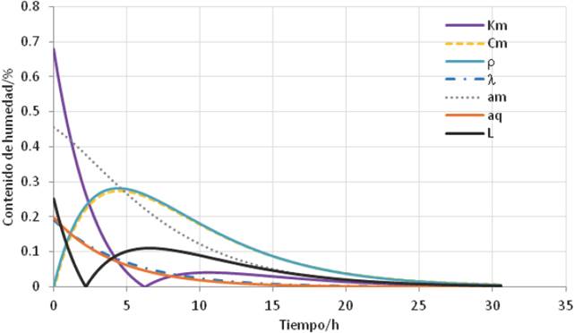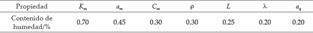Tabla 3 Coeficientes con mayor contribución en el perfil de humedad de acuerdo con la solución del modelo de Luikov