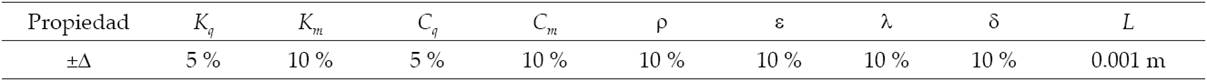 En el problema que se presenta aquí, los valores de Δ corresponden a los porcentajes de variación de los coeficientes. De lo anterior, la ecuación de propagación de incertidumbres para la distribución de temperatura y humedad se puede escribir como en la ecuación (15).