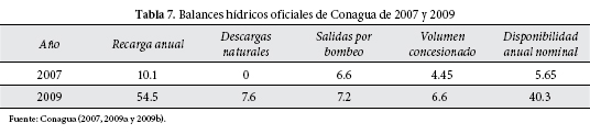 15 Resulta importante notar que en el informe de Conagua consultado no se toma en cuenta el volumen de agua efectivamente bombeado de 6.6 millones m3/a, sino el volumen de agua concesionado en el Registro Público de Derechos del Agua (Repda) de Conagua, de sólo 4.45 millones m3/a. Utilizar el volumen total concesionado y no el que realmente se está extrayendo da como resultado una disponibilidad de agua nominal o administrativa que no refleja la situación real, en aquel momento, de un abatimiento del acuífero.