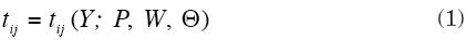 Si además se define P como un vector de precios de mercancías y producción de los sectores, W como un vector de precios de los factores (capital y trabajo), y Θ como un conjunto de parámetros que definen las tasas de impuestos indirectos y el tipo de cambio, se puede entonces especificar que para cada tij, elemento de T, se tiene que