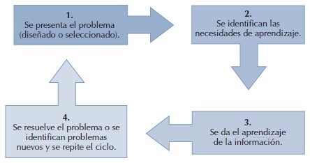 El camino que toma el proceso de aprendizaje convencional se invierte en el ABP: en la enseñanza tradicional primero se expone la información y, posteriormente, se busca aplicarla en la resolución de un problema; en el caso del ABP, primero se presenta el problema, se identifican las necesidades de aprendizaje, se busca la información necesaria y, finalmente, se regresa al problema; en el recorrido que viven los estudiantes, desde el planteamiento original del problema hasta su solución, trabajan de manera colaborativa en pequeños grupos; los problemas deben estar diseñados para motivar la búsqueda independiente de la información por todos los medios disponibles para el estudiante y, además, generar discusión en el grupo, para compartir en esa experiencia de aprendizaje la posibilidad de practicar y desarrollar habilidades.