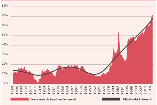 Figura 4 Coeficiente de apertura comercial, 1895-2017